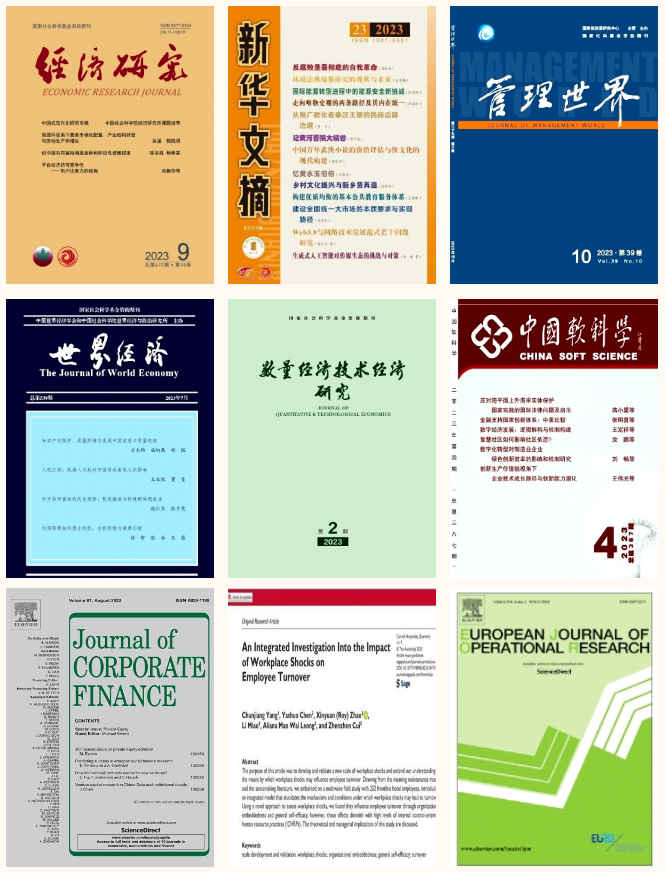 2023年全院师生秉承“扎根中国、放眼世界”的研究理念,在努力将论文写在祖国大地的同时,注重向国际学术界讲好中国故事。全年在《经济研究》、《管理世界》、Journal of Corporate Finance等顶级、权威期刊发表论文36篇,在SSCI、SCI、CSSCI等核心期刊发表论文170余篇,1篇文章被《新华文摘》全文转载,6篇文章被中国社会科学文摘、人大报刊复印资料等转载。