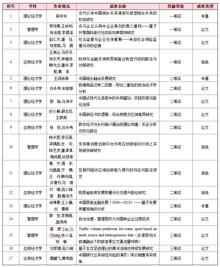 积极组织申报陕西省第十六次哲学社会科学优秀成果奖,全年共申报26项,共获批17项,其中一等奖4项、二等奖8项、三等奖5项,获奖数位列全校第一。